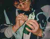 Die Uhren müssen jetzt auf die Klorolle drauf, damit das ganze endlich fertig wird. Uhu an die Klorollen schmieren und die Uhren draufsetzen und festdrücken heißt die Devise. Jetzt wissen wir, daß der Durchmesser von leeren Klorollen bis zu einem halben Zentimeter differiert. D.h. manche Uhren waren zu groß für die Rolle und manche zu klein...(Hier besteht ein Regulierungsbedarf durch die EU! Überraschenderweise hat sie darauf noch nicht reagiert.). Aber im Endeffekt haben doch alle gepaßt.