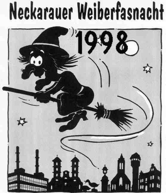 Die letzten Arbeitsgänge für unseren Orden liegen an: Die auf ca. 1 m Länge zugeschnittenen Bändel werden mit einer großen Nadel durch Uhr und Klorolle (dann hält der Aufbau auch) gezogen und zusammengebunden. (Hier kommt jetzt die ABM-Maßnahme ins Spiel: Leider haben wir die gestanzten Löcher in der Klorolle fast immer verfehlt. Das Lochen war also für die Katz). Fertig ist der Orden. Aber halt, jetzt noch die Plakate drauf (wenn nur diese dummen Aufkleber auch kleben würden...). Vorne kommt unser tolles, von Barbara Eckert-Stahl entworfenes, Plakat in Kleinformat drauf und hinten haben wir aus dem Internet (Hexen und neue Techniken ;-) ) ein schönes Motiv (biertrinkende Frau) gefunden, das wir noch ein wenig an uns angepaßt haben (engagiert, weiblich, stark).